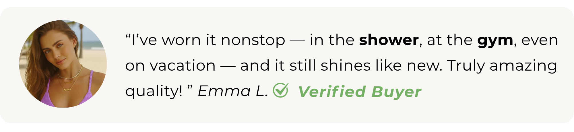Our jewelry is thoughtfully designed and waterproof — you don’t need to take it off every time it touches water.